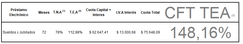 El CFT incluye capital, intereses, e IVA sobre los intereses.